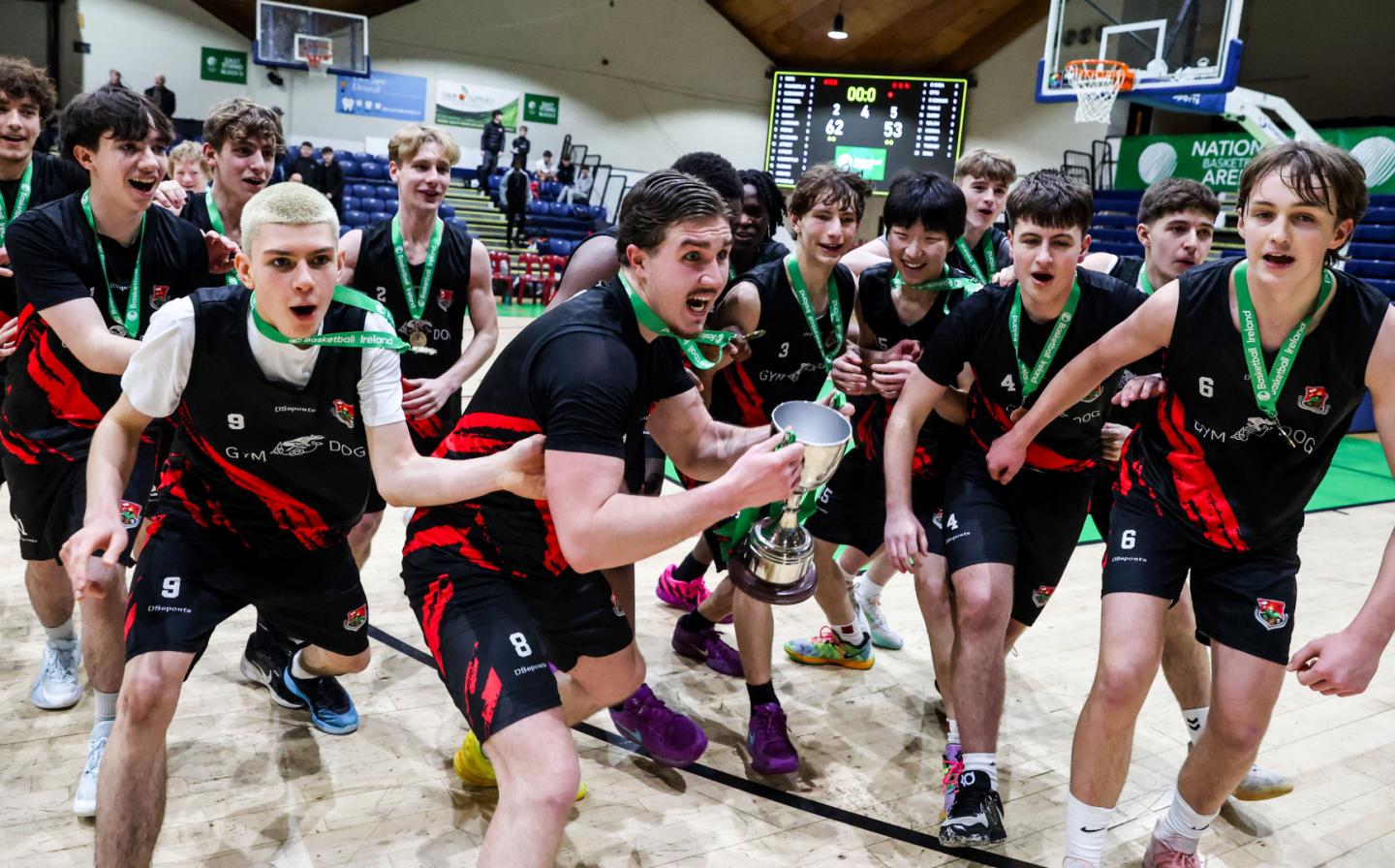 Kildare Town clinched the U19 ‘B’ Boys All-Ireland Schools Cup beating Coláiste An Spioraid Naoimh 62-53 at the National Basketball Arena on Wednesday. Charlie Dunny led the way with 21 points on his way to the MVP award for Kildare Town.